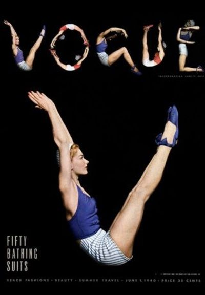 Fast forward to 1940 and Agha is still challenging and breaking the barriers of modern magazine covers. The 1940 issue ‘Fifty bathing suits’ replaced the traditional ‘VOGUE’ font with photographed women showing the letters. This cover is more couture fashion than Agha’s previous Vanity Fair issues, there is more sex appeal than the previous man and woman covers. I think this is a really unique idea that had never been done before and is reminiscent of Agha’s ability to defy previous design rules. The crisp, cropped images contrast harshly with the black background. The result is a dramatic, female empowering cover that the reader can picture themselves rocking a bathing suit. I prefer this approach to the more toned down Vanity Fair illustrations. Although conducted by the same designer, this 1940 cover has a sense of maturity and elegance through the images which is absent in Vanity Fair. This could be due to Vanity Fair being more unisex whilst Vogue’s audience was more high class women.