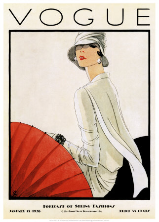 The January Vanity fair cover in 1930 is one of Agha’s earliest works for the company. The illustration by Eduardo Garcia Benito, shows a woman lighting a cigarette for her male partner. The green cover gives a freshness and relaxed mood to the viewer, possibly as an ode to the new year. Compared to his later works this one is more tame of Agha’s designs, the colour scheme and subject matter are more comfortable. The sans serif text at the top (a staple of Vanity Fair’s typography) catches the viewers eye in it’s heavy font. To me, this cover looks more like a cigarette advertisement than a high fashion cover. The colours are very subdued which dulls down any excitement of the reader. Although, the crisp lines and block shapes are very modern and unique for that time period.